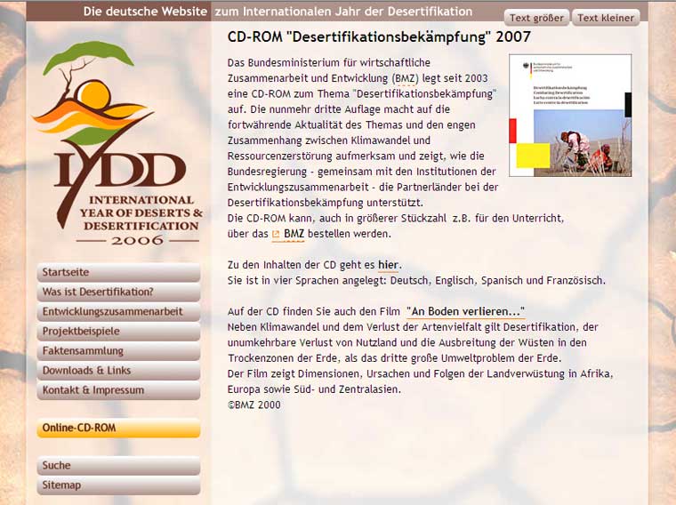 1st, 2nd, and 3rd edition presenting the German contribution to UNCCD combining a Web-ROM and website in German, English, Spanish and French, plus two 30 min. video documentaries