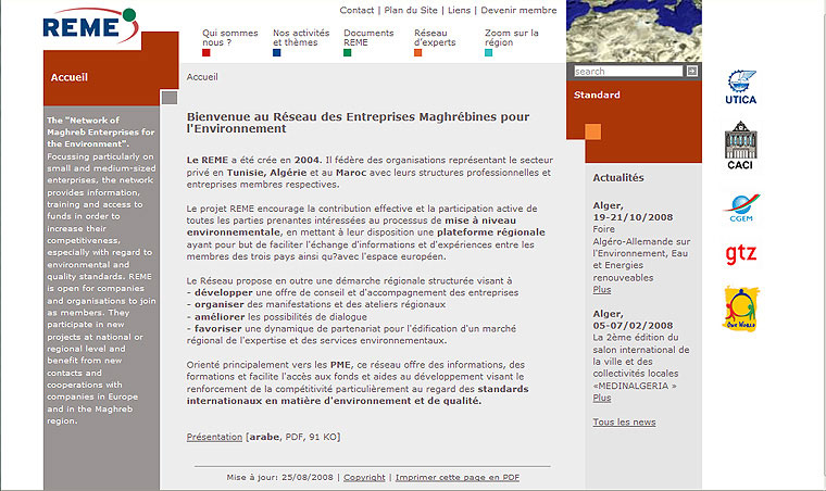 Regional web portal for REME (Network for Environmental Competitiveness in the Maghreb Region) plus communication strategy, CI, and print media