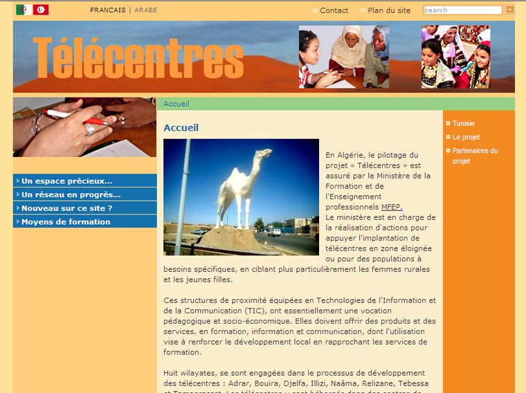 Web Portal for "Télécentres" Project, serving remote rural areas, in particular underprivileged and female population.